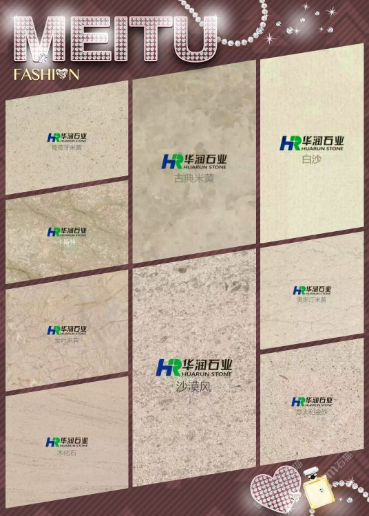 華潤石業(yè)主營:葡萄牙米黃,白沙米黃,木化石,沙漠風,古典米黃,北極光,云多拉灰,奧斯汀米黃,卡斯特米黃,貝魯特等工程系列石材。