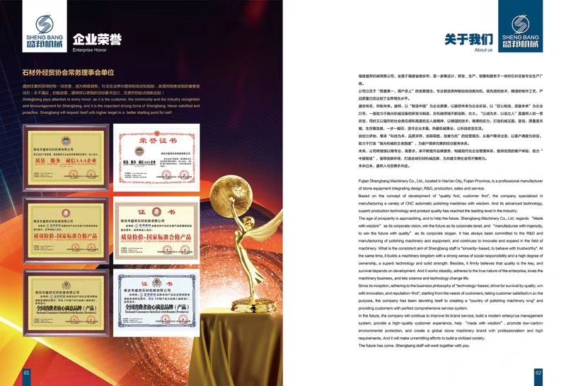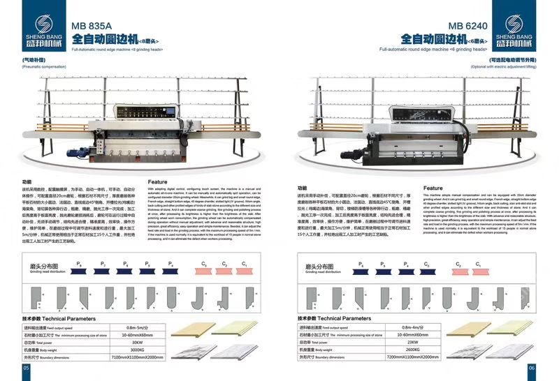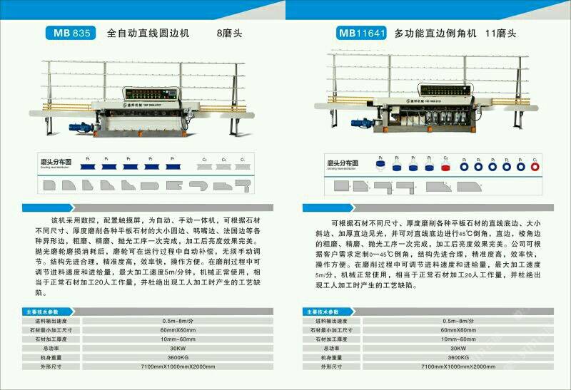 公司主營:‘’全自動(dòng)數(shù)控圓邊機(jī)、全自動(dòng)數(shù)控地腳線機(jī),多功能直邊倒角機(jī)’‘全自動(dòng)直邊倒角機(jī)‘’全自動(dòng)臥式磨邊機(jī)’也可根據(jù)客戶需求定制各種全自動(dòng)石材加工機(jī)械!磨邊機(jī)、拋光機(jī)合二為一,粗磨、精磨、拋光一次完成,拋光后效果高于板面光潔度!拋光磨輪磨損消耗后,磨輪可在運(yùn)行過程中自動(dòng)補(bǔ)償,無須手動(dòng)調(diào)節(jié),不會(huì)產(chǎn)生手工操作中出現(xiàn)的工藝缺陷!結(jié)構(gòu)先進(jìn)合理!精準(zhǔn)度高,效率快,操作方便!維護(hù)簡單快捷! 盛邦機(jī)械團(tuán)隊(duì)期待與您攜手并進(jìn),為您降低加工成本,創(chuàng)造財(cái)富!使用我司全自動(dòng)磨邊拋光機(jī)械成本每米:人造石每天按工作8小時(shí)計(jì)算,一分鐘可磨4米,8小時(shí)可磨1920米,每米成本0.4元,大理石8小時(shí)可磨1300米,每米成本0.6元,花崗巖8小時(shí)可磨9百多米,一分鐘可磨2米,每米成本0.8元,(成本含水電費(fèi),人工,磨輪損耗等) 操作簡便,雜工即可,精準(zhǔn)度高,無工藝缺陷,售后維護(hù)方便,簡單。歡迎到水頭鎮(zhèn)弘泰機(jī)械C區(qū)2號(hào)來考察試機(jī)。聯(lián)系人:方經(jīng)理18016666181