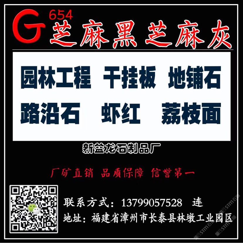 兼營:芝麻灰g655、芝麻白g623、灰麻g688、黃銹石g682等花崗巖品種板材及各種異形;加工方式多樣化:磨光板、毛板、厚板 、薄板、規(guī)格板、火燒板、地鋪石、小方塊、自然板、拉絲板、洗衣板、染板、菠蘿面、機切板、大板 、荔枝面、路沿石、臺面板、拋光板、線條、盲人石、滾石及各種建筑工程配套用石的生產(chǎn)、加工和銷 售。產(chǎn)品不僅暢銷國內(nèi)各大城市,還遠(yuǎn)銷到美國,加拿大,英國,韓國,香港,臺灣等國家和地區(qū)。