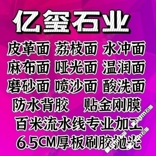 發(fā)布信息: 20年專業(yè)加工6.5CM厚板刷膠背網(wǎng)拋光 拉絲面 麻布面2500KG高壓水沖面 皮革面 自動(dòng)金剛膜 絲綢面 荔枝面 酸洗面 噴沙面 溫潤面 啞光面磨砂面防水背膠掃描 水頭曾莊匯恒C5 17750877905