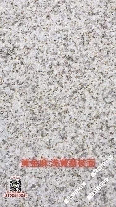 發(fā)布信息: 隨州黃金麻石材-隨州白麻花崗巖-光面黃金麻-燒面黃金麻-荔枝面黃金麻-光面白麻-燒面白麻-荔枝面白麻 隨縣三和石業(yè) 劉經(jīng)理 18100550054(微信同號(hào))專業(yè)隨州黃金麻/白麻供應(yīng)商廠家,工廠位于隨州石材工業(yè)園;專注于別墅幕墻干掛工程及園林地鋪石材加工,實(shí)力工廠,廠礦一體;主營(yíng):隨州黃金麻、隨州白麻、湖北黃金麻、湖北白麻、黃銹石、白銹石、黃色麻石、白色麻石、光面黃金麻、燒面黃金麻、荔枝面黃金麻等花崗巖;同等品質(zhì)基地批發(fā)價(jià)格更低,隨縣三和石業(yè)有限公司歡迎你來(lái)電溝通洽談業(yè)務(wù)!