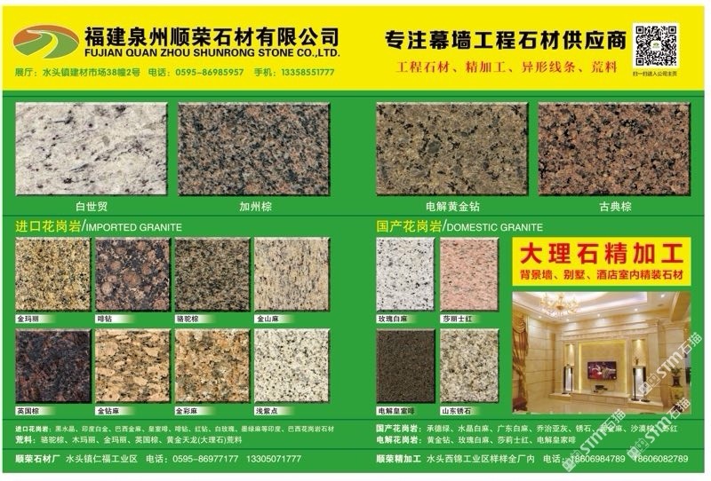 發(fā)布信息: 花崗巖廠址:各種進(jìn)口國產(chǎn)花崗巖工程板 精加工廠址:別墅酒店室內(nèi)大理石精加工 市場地址:水頭閩南建材市場33棟2號(hào) 聯(lián)系:13358551777許自在