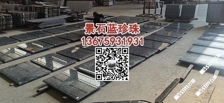 藍珍珠花崗巖幕墻干掛板銀珠石材外墻干掛水景石藍金剛