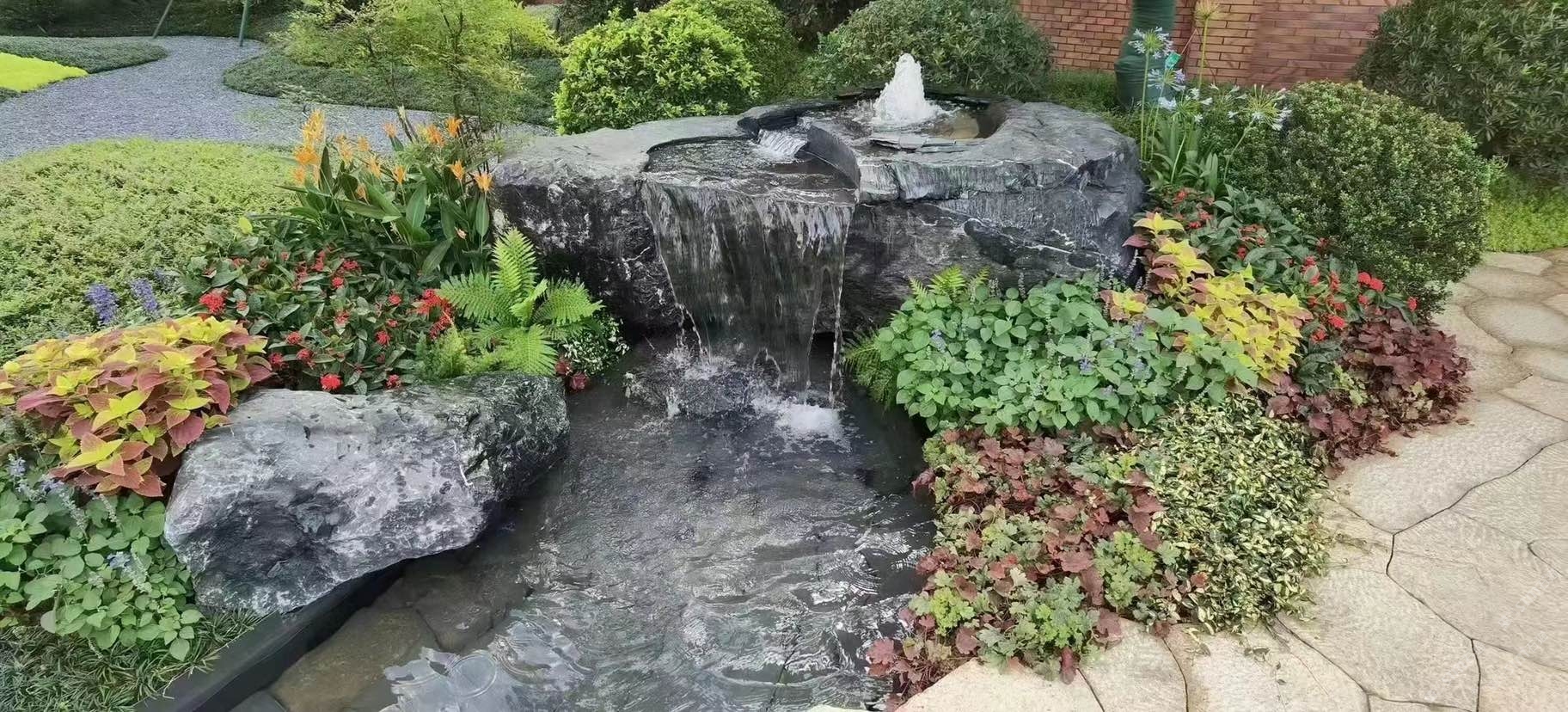 黑山石地產(chǎn)應(yīng)用,流水生財(cái),黑色永恒經(jīng)典搭配
