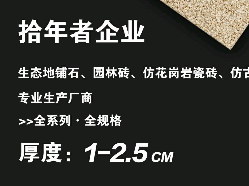 發(fā)布信息: 拾年者生態(tài)地鋪石 厚度:1.0/1.2/1.5/1.8/2.0cm 規(guī)格:30*60/60*60/60*90/60*120 適用:園林地鋪/市政工程/幕墻干掛 花色規(guī)格靈活定制 專線生產(chǎn) 工藝齊全 竭力服務(wù)云貴川渝優(yōu)質(zhì)工程項目 歡迎咨詢:周13902181971,陳13996029567