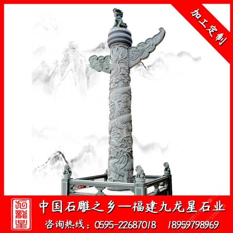 發(fā)布信息: 九龍星石業(yè)常年批發(fā)石雕柱子,石雕華表柱、石雕中華柱、石雕龍柱、石雕文化柱、石雕圓柱、石雕方柱等等,廠家直接供應(yīng),工期快,咨詢電話18959798969 華表石雕又稱中華柱石雕一種中國(guó)古代傳統(tǒng)建筑形式,屬于du古代宮殿、陵zhi墓等大型建筑物前面做裝飾用的巨大石柱,相傳華表是部落時(shí)代的一種圖騰標(biāo)志,古稱桓表,以一種望柱的形式出現(xiàn),富有深厚的中國(guó)傳統(tǒng)文化內(nèi)涵,散發(fā)出中國(guó)傳統(tǒng)文化的精神、氣質(zhì)。