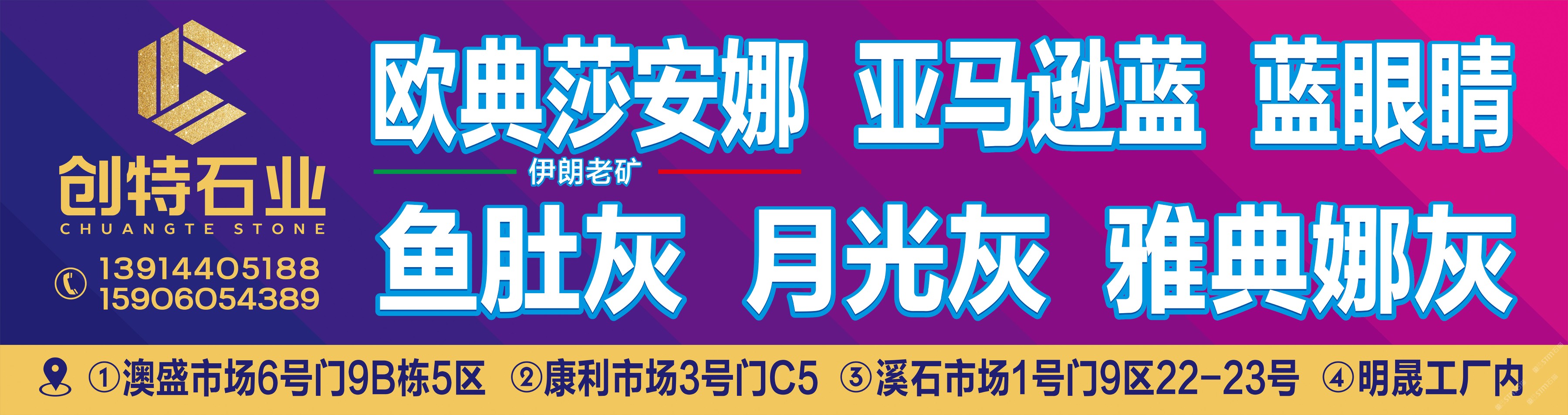 創(chuàng)特大理石 聯(lián)系人:吳/雅典娜灰    159****4389 查看 159****4389 查看 主營(yíng)范圍: 異型加工、大板批發(fā)、大理石加工、荒料、 企業(yè)地址:福建泉州康利3號(hào)門(mén)第二個(gè)行吊創(chuàng)特石業(yè)雅典娜灰專(zhuān)場(chǎng)