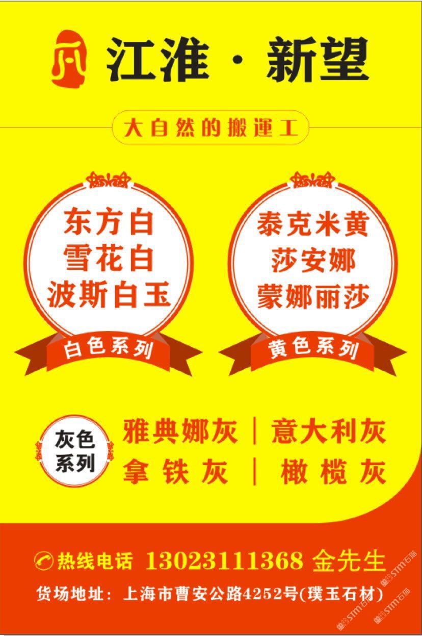 江淮貿(mào)易 聯(lián)系人:金先生    130****1368 查看 130****1368 查看 主營范圍: 大板批發(fā)、大理石加工、異型加工、荒料、石材工藝品、 企業(yè)地址:上海上海嘉定區(qū)曹安公路璞玉精品市場(chǎng)