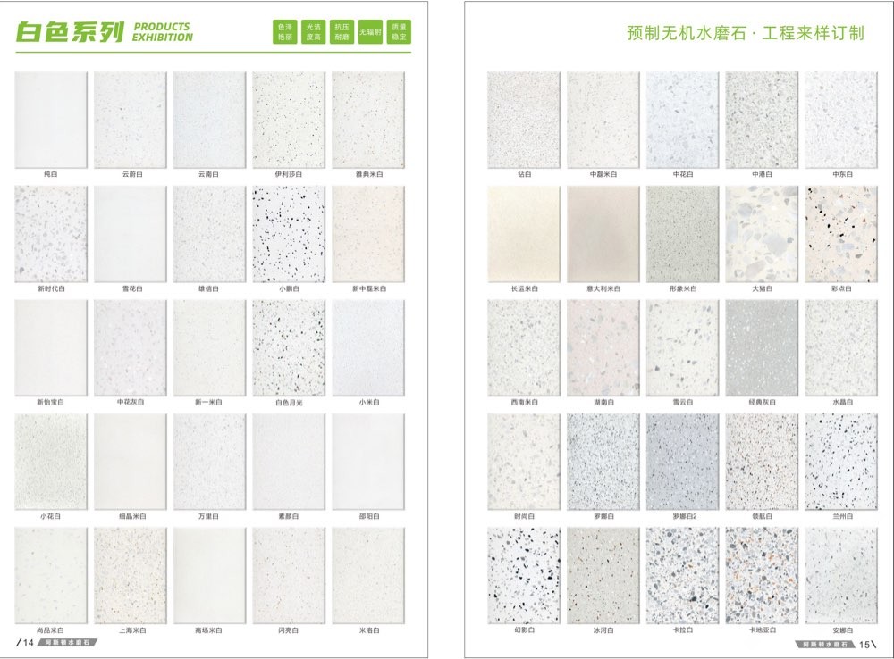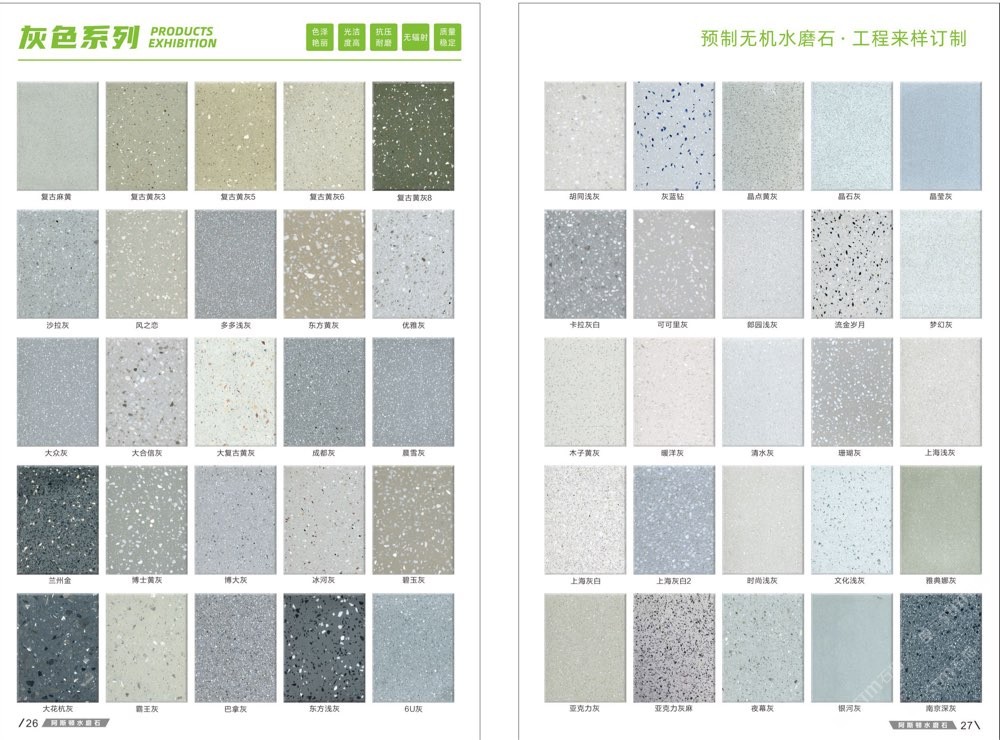 發(fā)布信息: #阿斯頓水磨石 新版畫冊預告,喜歡嗎 純無機水磨石,專業(yè),品質(zhì)保證! ① 無樹脂、天然花色 ② 可定制任意款式(設計/尺寸) ③ 來板仿樣2~3天完成 ④ 生產(chǎn)、銷售、加工一體化