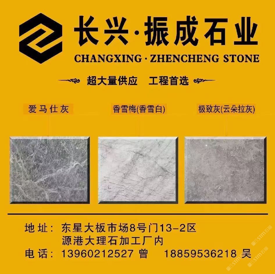 長興·振成石業(yè) 聯(lián)系人:曾志鋒    139****2527 查看 手機號碼:無 主營范圍: 大板批發(fā)、荒料、 企業(yè)地址:福建泉州東星大板市場8號門13區(qū)02號