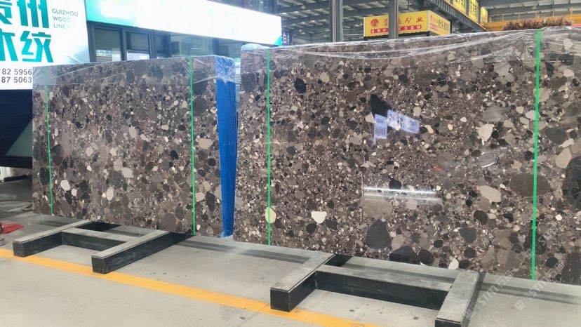 天然水磨石化石灰,皇家金檀墨染流云