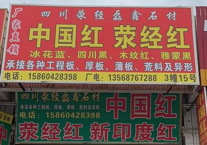 四川滎經(jīng)磊鑫石材 聯(lián)系人:韓小姐    158****8398 查看 手機(jī)號(hào)碼:無(wú) 主營(yíng)范圍: 大板批發(fā)、 企業(yè)地址:福建泉州南安市水頭鎮(zhèn)閩南建材市場(chǎng)3棟15號(hào)
