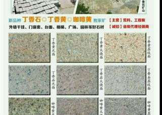 福建金湖石業(yè)主營產(chǎn)品:丁香黃(光面),丁香黃(火燒面),丁香黃,丁香石,丁香石(光面),丁香石(火燒面),五彩紅,珍珠蘭(花崗巖),藍寶石企業(yè)地址:福建三明泰寧縣大龍鄉(xiāng)