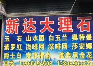 新達(dá)大理石主營產(chǎn)品:奧特曼(旺程礦),紅龍玉4,紅龍玉3,黑龍玉,山水畫6,白雪公主,白玉3,土耳其玫瑰,紅寶石,索菲特金,白玉蘭企業(yè)地址:福建南安水頭閩南建材市場加工區(qū)A幢32-33號。
